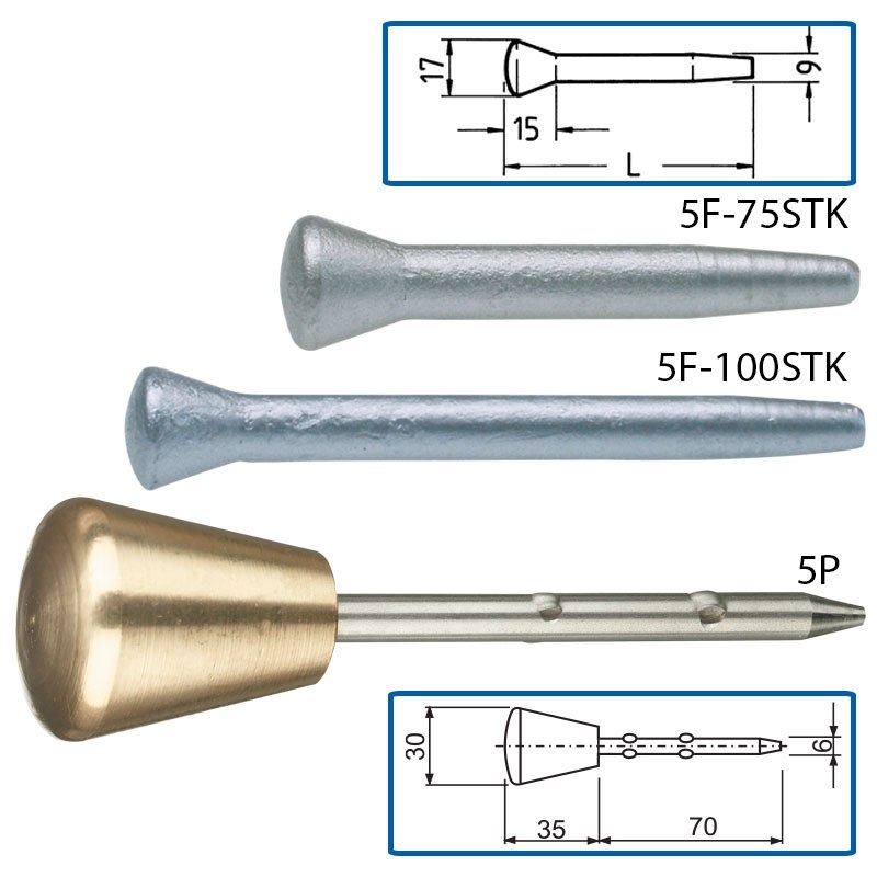 Wykonane z hartowanej na zimno stali są niezwykle wytrzymałe. Sprawia to, że możemy je wbić w bardzo twarde podłoża. Stal jest zabezpieczona przed korozją cynkiem. Centr na dużej główce zapewnia dokładne ustawienie instrumentu nad punktem, ponadto można wybrać wariant, gdzie na główce jest napis “punkt pomiarowy” lub nie ma żadnego.