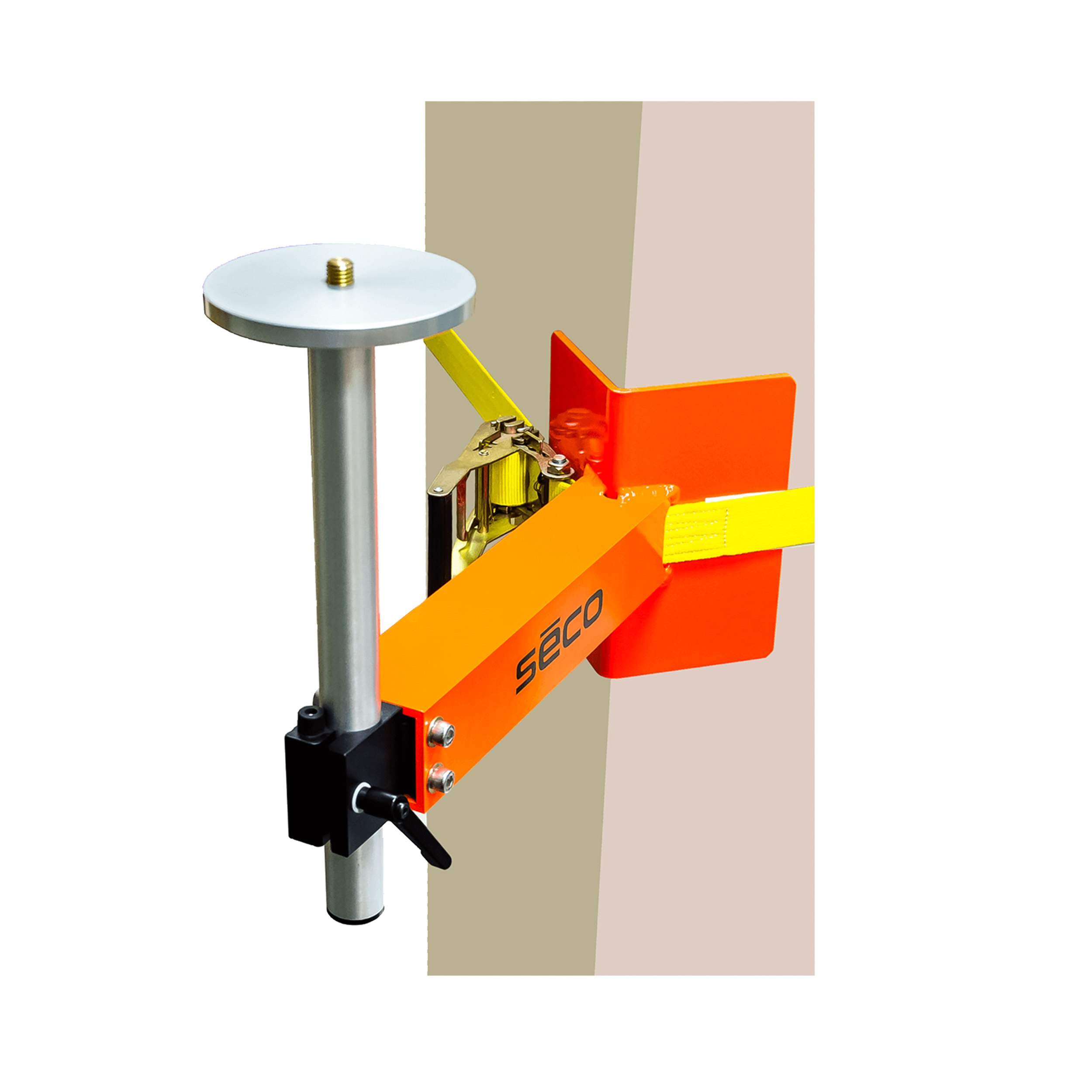 Uchwyt Seco jest bardzo stabilny przez dużą powierzchnię styku z miejscem jego montowania. Uchwyt może być zamontowany na czas pomiaru poprzez pas ściągający lub na stałe przez śruby 3/8. Regulowana kolumna wraz z obrotową głowicą zapewnia precyzyjne ustawienie instrumentu na konkretnej wysokości. Zakres regulacji to 30 cm.